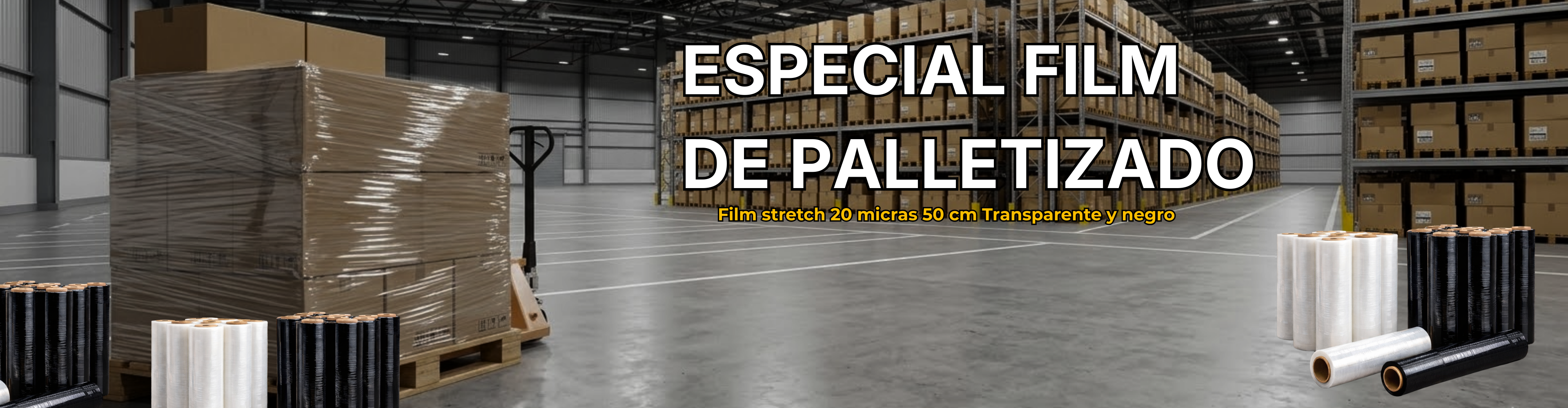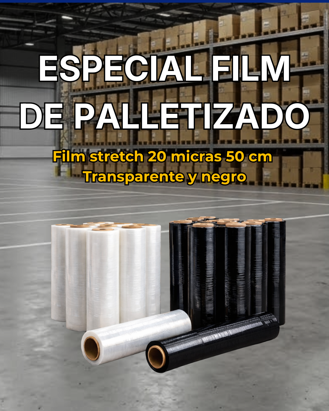 Film Stretch Palletizado Negro 2.3 kg 20 micras pack 6 unidades hasta 500 mts