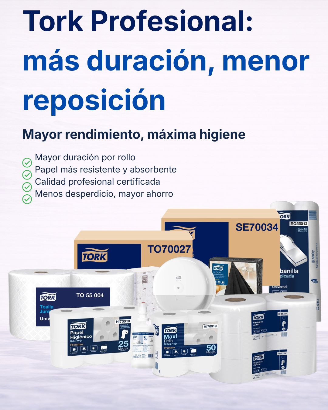 PACK PAPEL HIGIENICO TORK 50 MTS + TOALLA TORK 2X24 MTS + SERRVILLETA ovella 300 unid