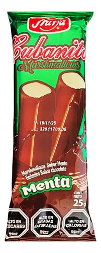 Disfruta de los Marshmallows Menta Cubanito Fruna 25 gr un dulce suave y refrescante que combina el sabor único de la menta con la textura esponjosa de los marshmallows perfectos para un momento de placer o para compartir con amigos y familia Lleva contigo este delicioso snack y siente su frescura en cada bocado
