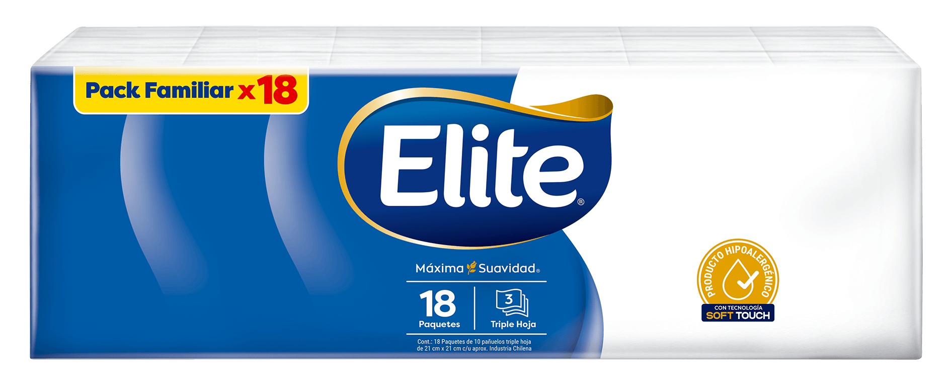 Pañuelos Desechables Triple hoja Elite Pack familiar x18